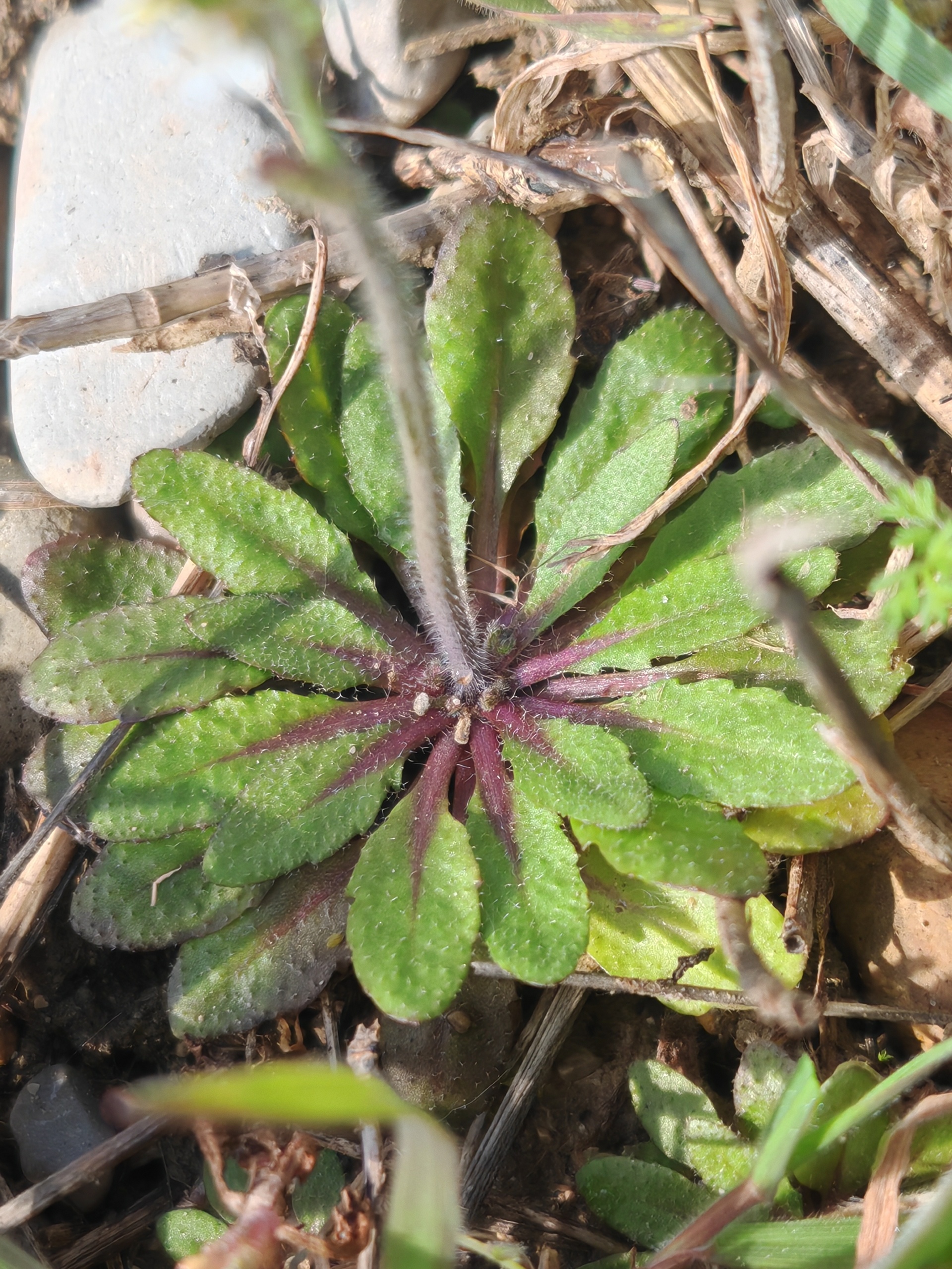 - Feuilles : Les feuilles radicales sont disposées en rosette, de forme obovale et légèrement dentées. Les feuilles caulinaires sont rares (1 à 3), petites, oblongues et sessiles.