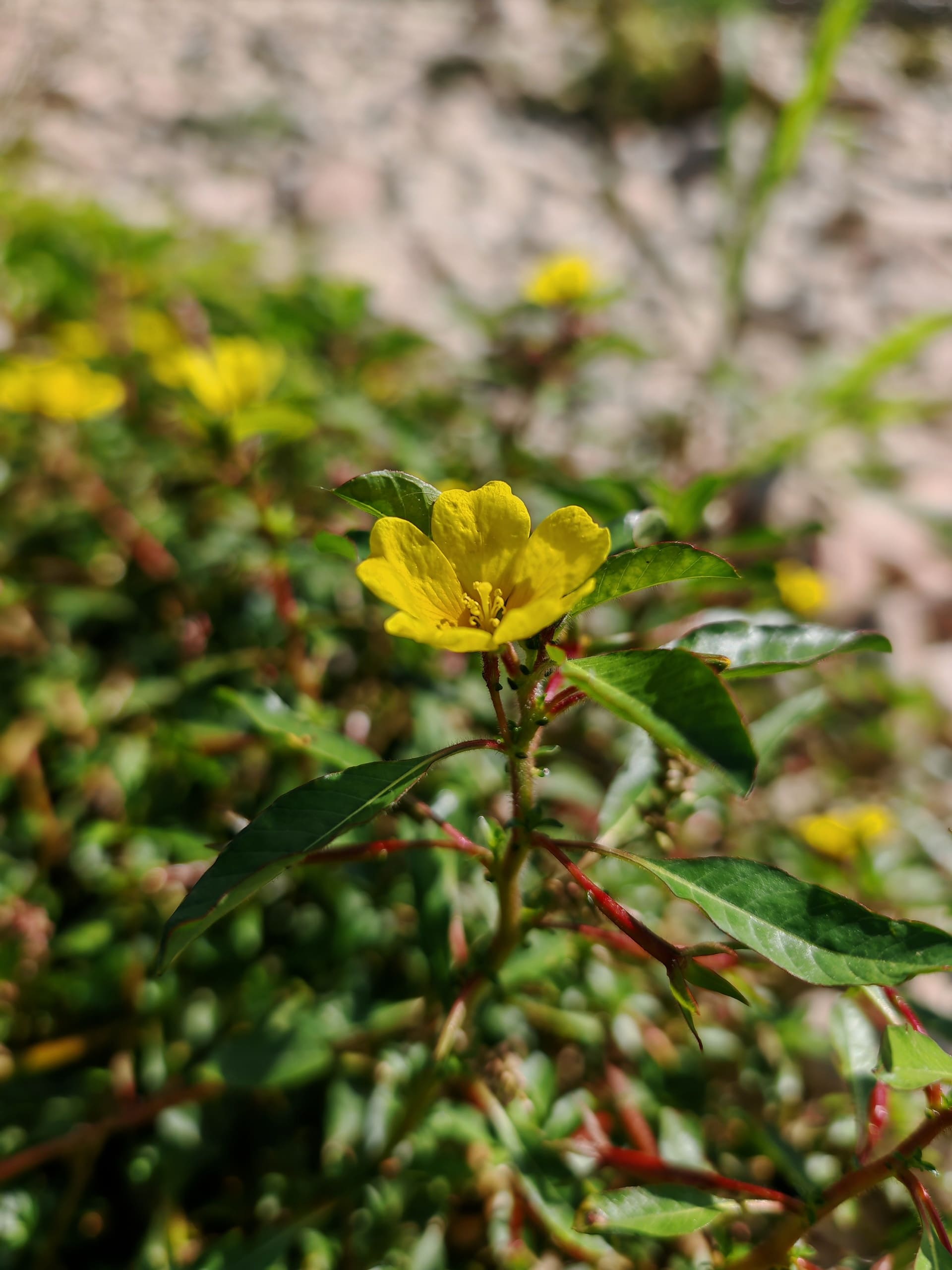 - 🍃 Feuilles : alternes, simples, elliptiques à oblongues, entières, d’un vert luisant ; limbe brusquement rétréci formant un pétiole bien distinct (caractère distinctif par rapport à Ludwigia grandiflora.)