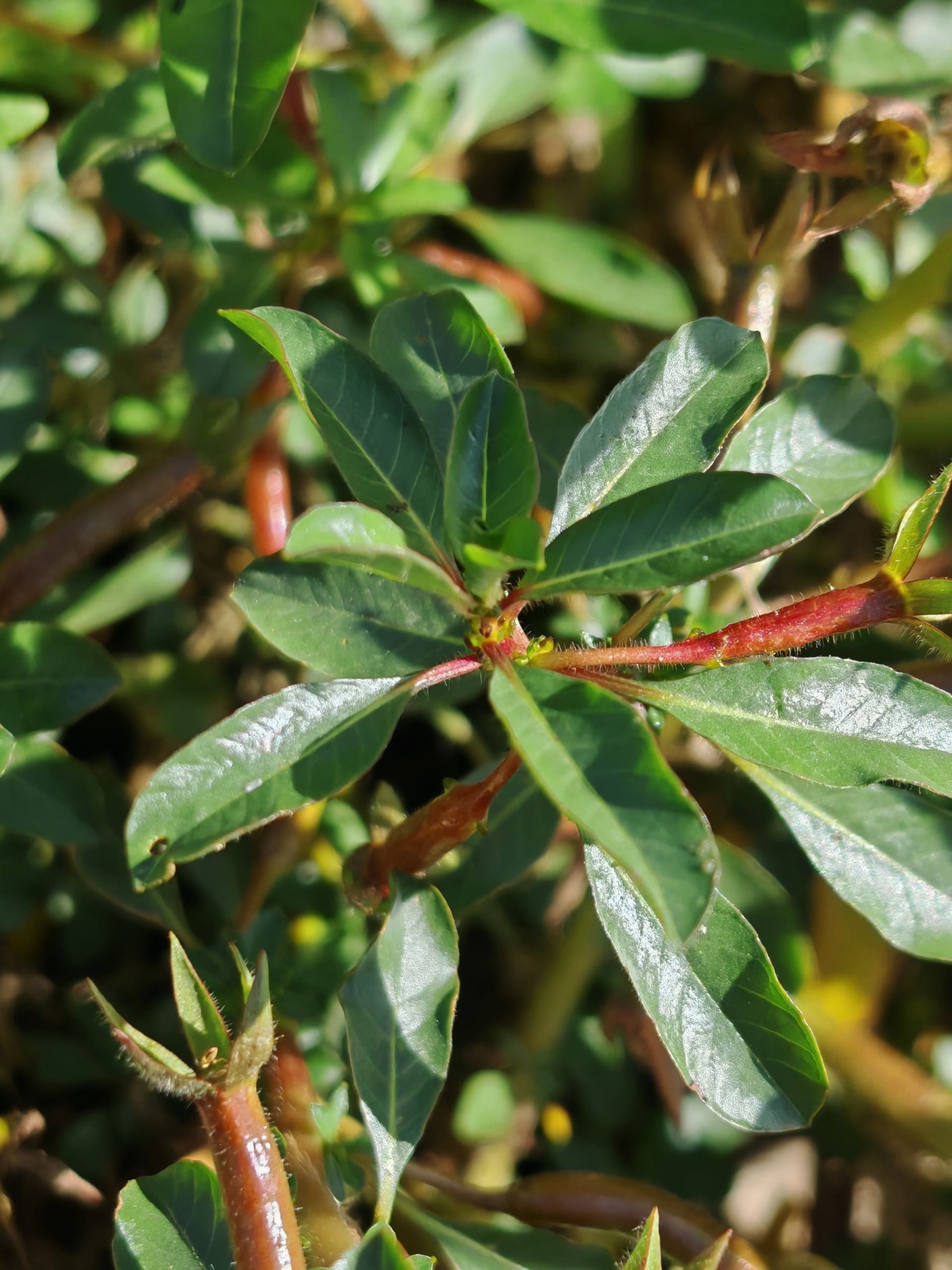 - 🌿 Tige : allongée, flottante ou couchée, ramifiée, émettant des racines adventives aux nœuds ; légèrement charnue et verte à rougeâtre.