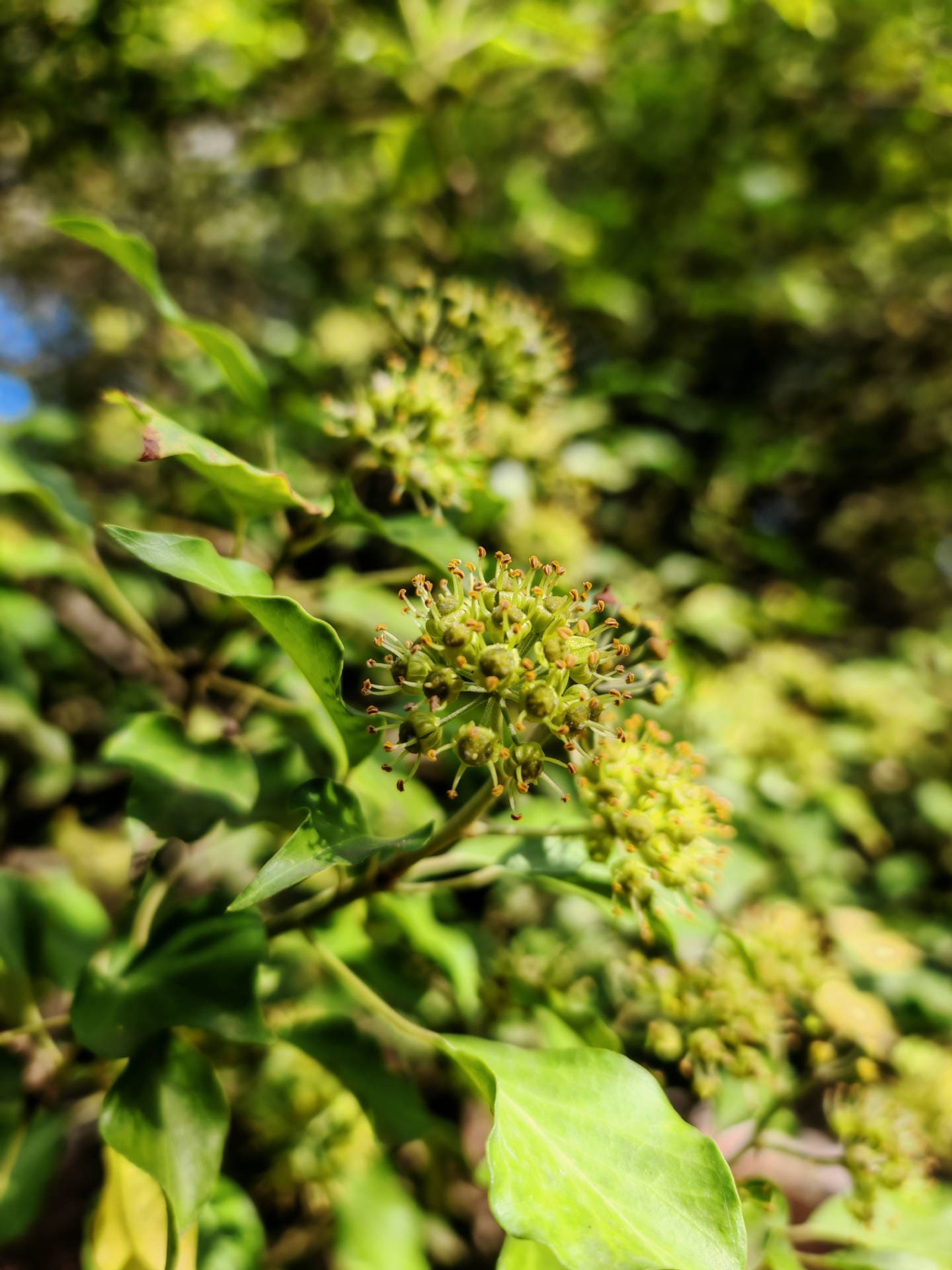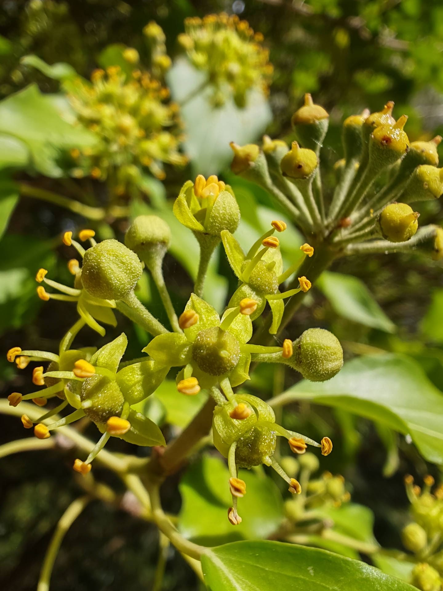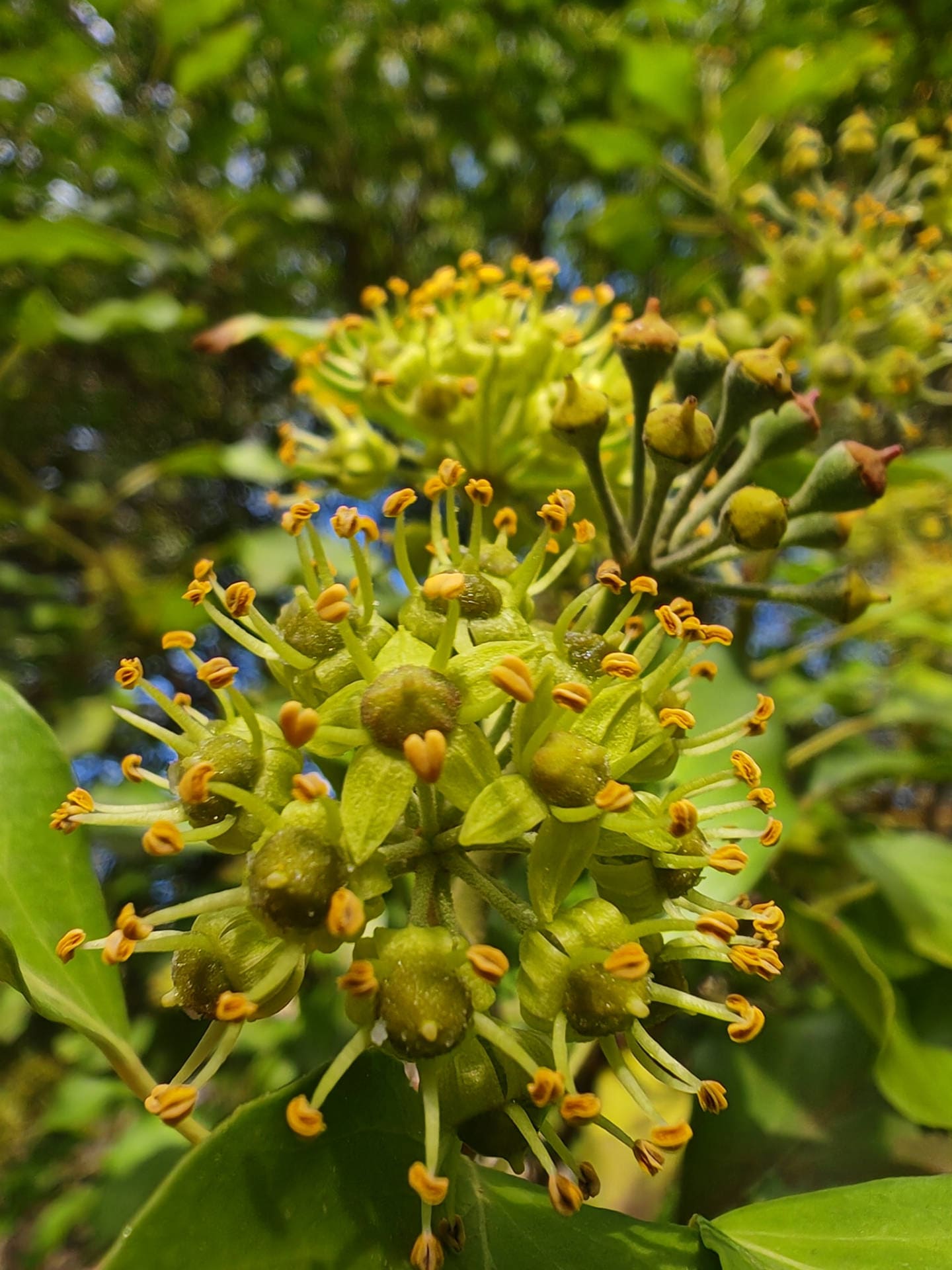 - 🌸 Ses fleurs, d’un jaune verdâtre, sont regroupées en ombelles terminales globuleuses.