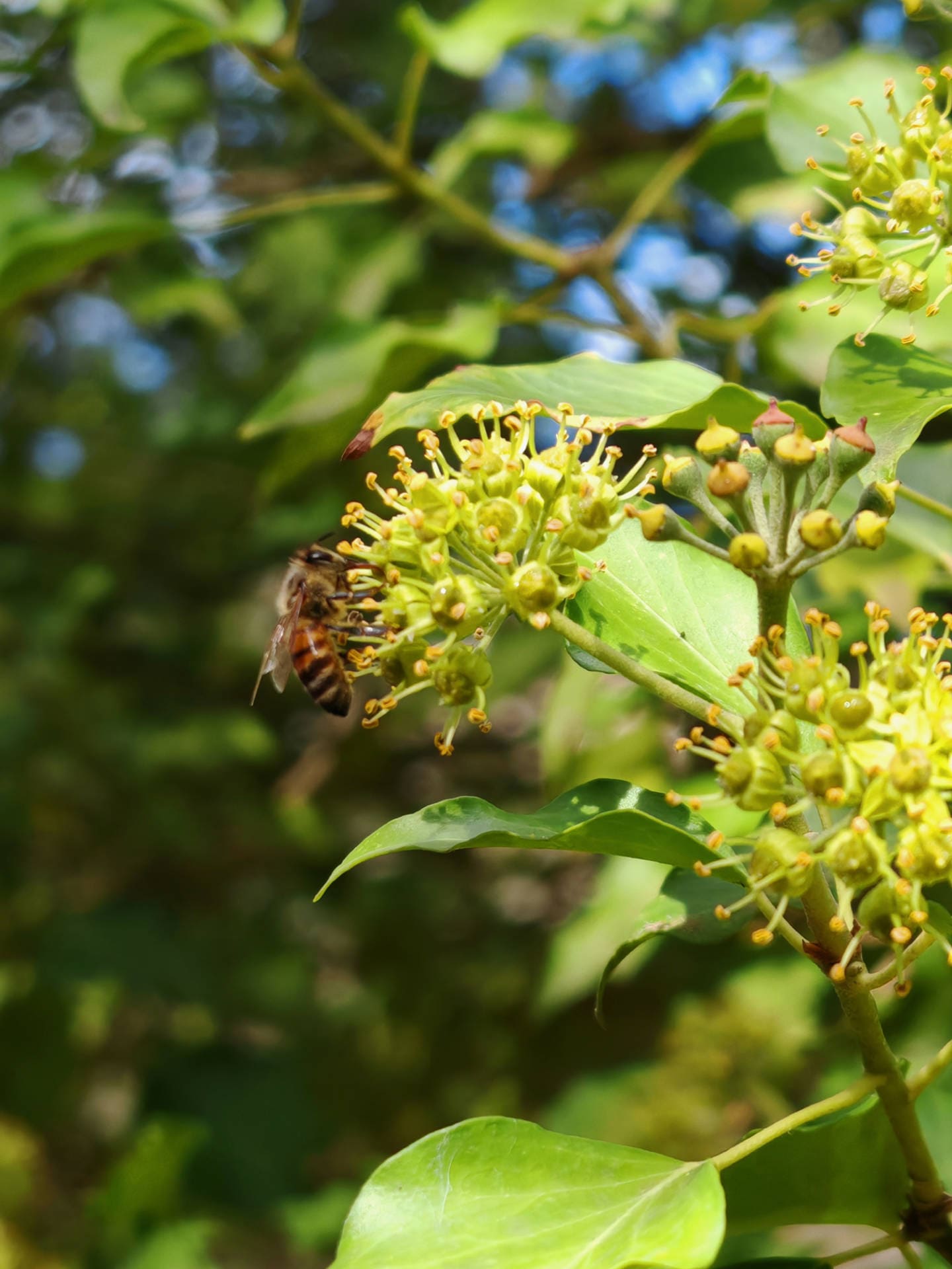 Le lierre grimpant (Hedera helix L.) ne parasite pas les arbres, mais les utilise comme support. Il est bénéfique pour la biodiversité : ses fleurs tardives nourrissent les pollinisateurs, ses baies hivernales les oiseaux, et son feuillage offre un abri à de nombreux insectes.