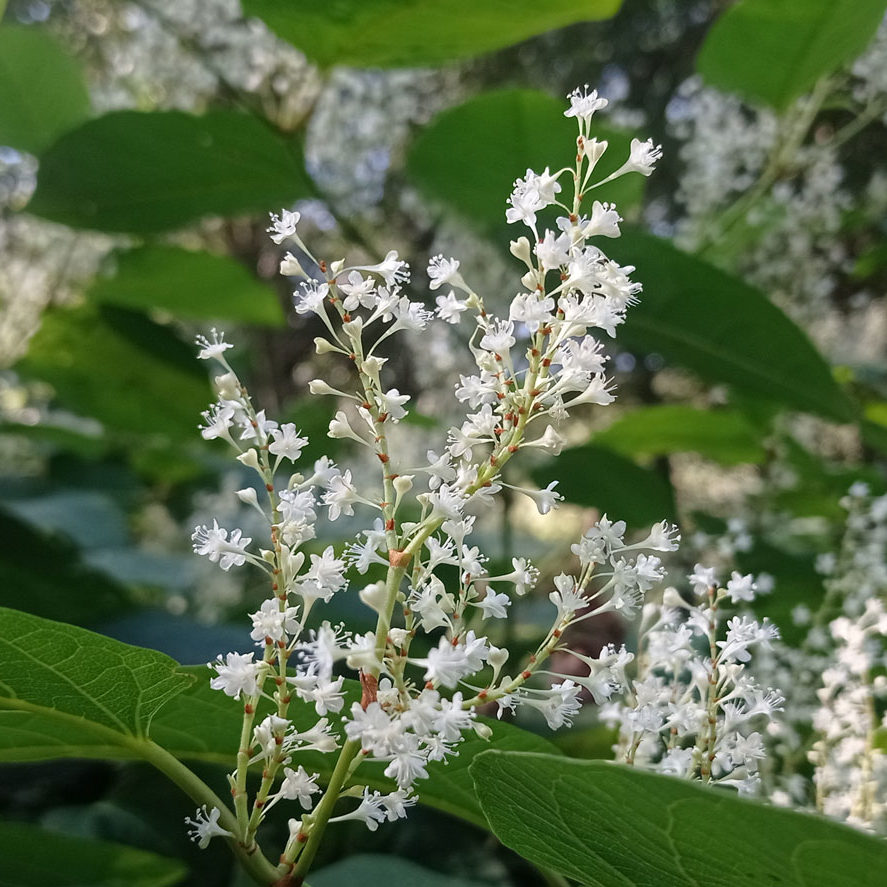 • 🌸 Fleurs : petites, rose clair à violacé, regroupées en épi dense et cylindrique au sommet de la tige ; 5 tépales soudés.